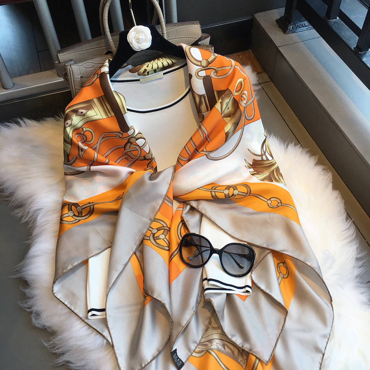 Hangzhou Silk Silk Silk Scarf Female Spring Fall and Winter Retrospective Printing Square Paper with Shoulder Silk Scarf