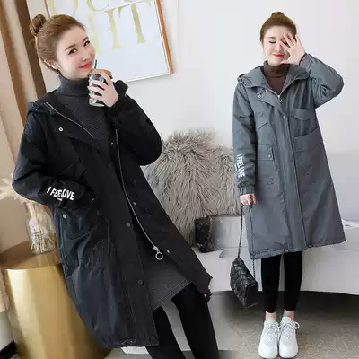 Pregnant women coat female Korean in long loose cotton pregnancy autumn and winter thick cotton-padded jacket winter plus velvet jacket