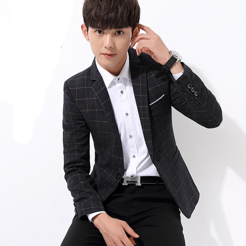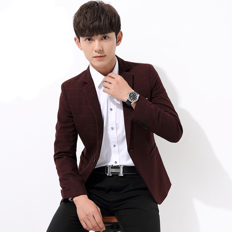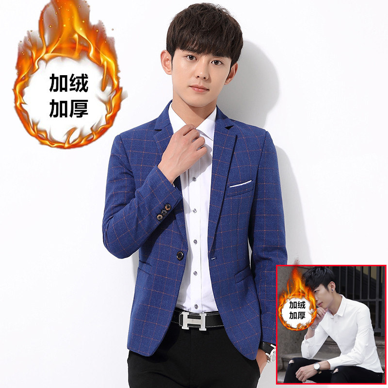 Autumn style Korean version Men's suit Plaid casual small suit Men's fashion Tailor-made Single West Thickened suede Young jacket Western suit