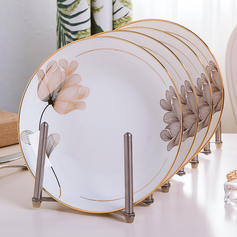Gold Romantic Flower Sea 8-inch deep plate (4 sets) Gold Gold Royal Rose 8-inch deep plate (4 sets) gold sculpture gold rose 8-inch deep plate (4 sets) the gold is like a snowflake 8-inch deep disc (4