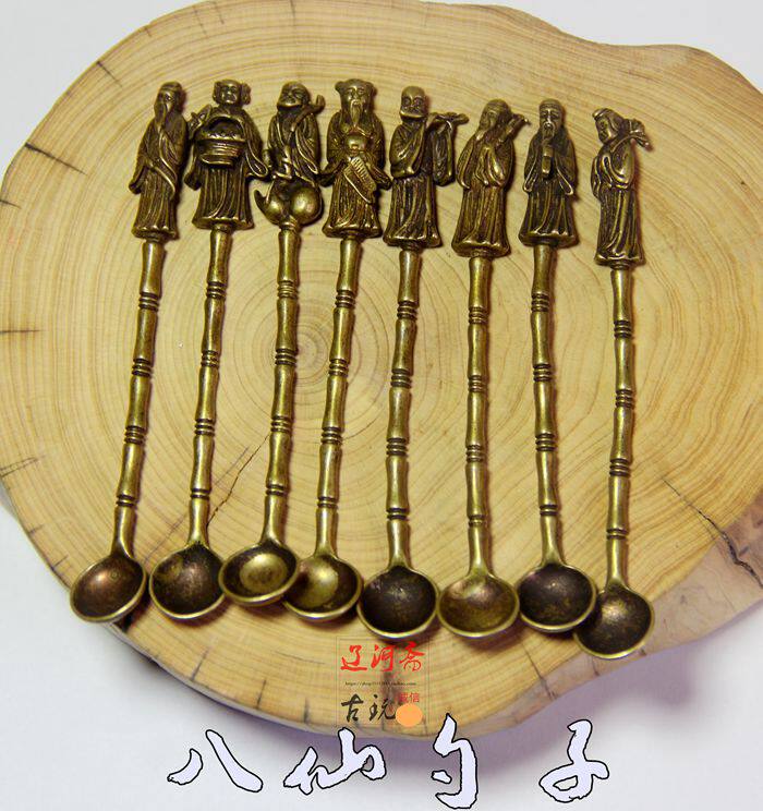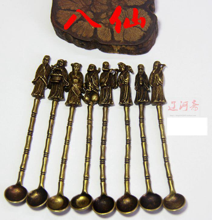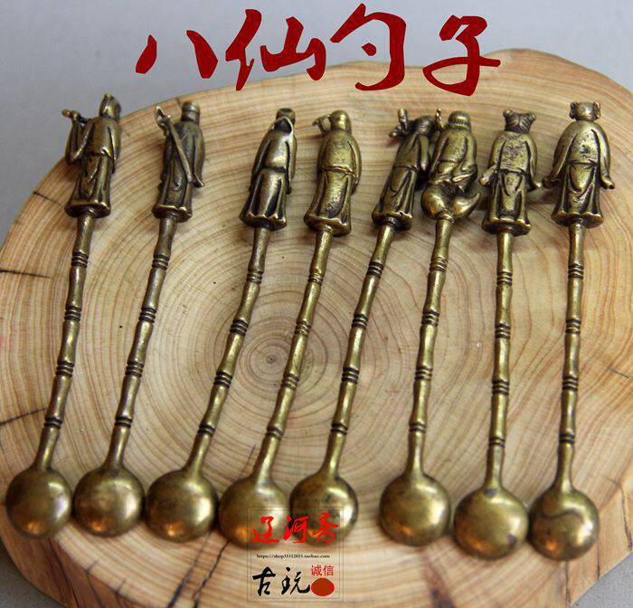 Antique Eight Immortals Spoon Herbal Bronze Spoon Suit set of old bronze ware old objects Ancient playing miscellaneous collection of pure copper pieces
