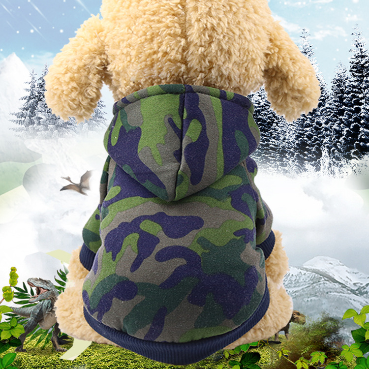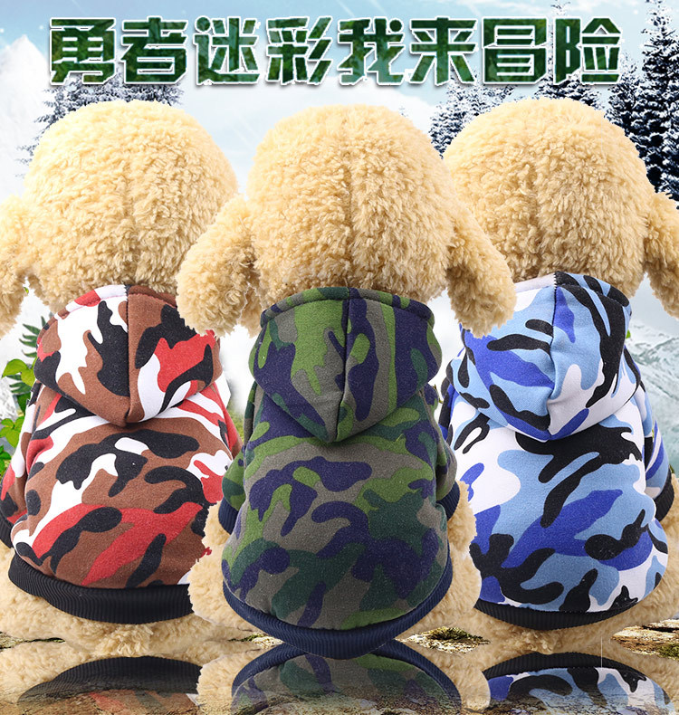 Dog clothes autumn and winter new camouflage pet fleece sweater Teddy small and medium dogs and cats two-legged hooded clothing