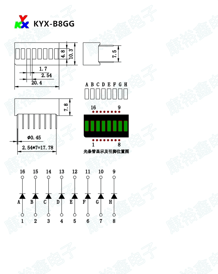 8 section super bright green pure green light glow tube light strip KYX-B8GG 8 segment strip glow tube 8 section light pole
