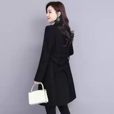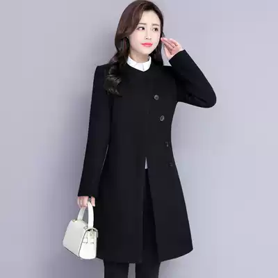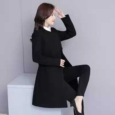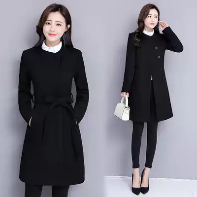 Professional woolen coat women's long version 2021 new autumn and winter temperament overalls thick black woolen coat