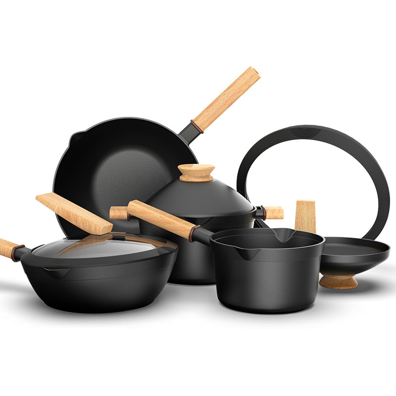 German Red Dot Award Non-stick Pan Set + Health Casserole + Bamboo Cutting Board Knife Combination + Tissue Holder + Cleaning Brush