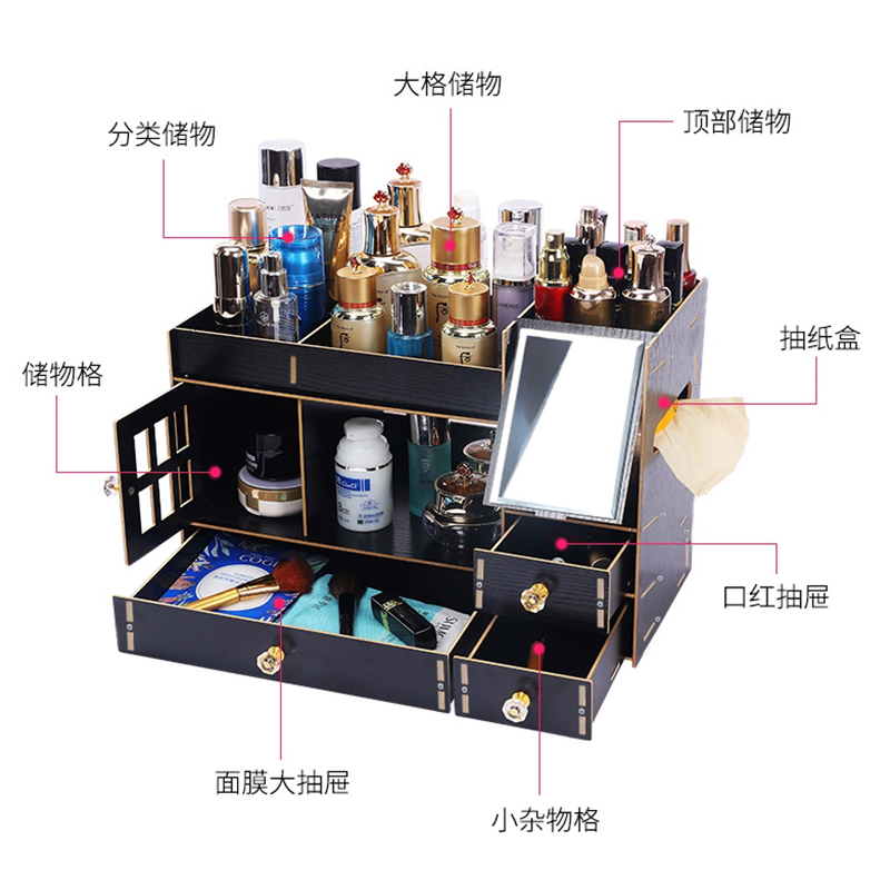 Net Red Large Number Desktop Finishing Cosmetics Containing Box Drawers University Entrance Red Skin Care Skin Dresser Dresser