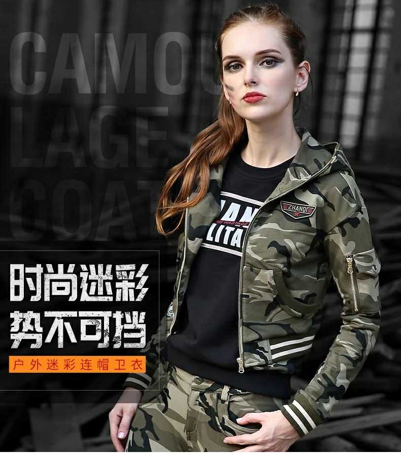 Battlefield elite tribe dream gorgeous 2018 spring and autumn new women's camouflage hooded sweatshirt short version of women's jacket