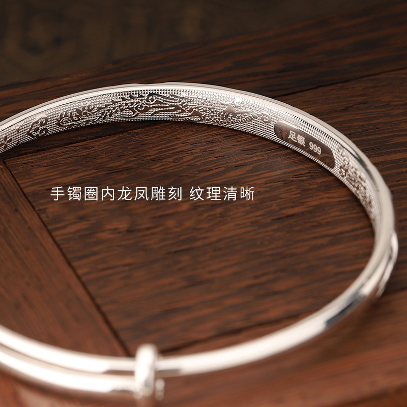 Jiling Lake 999 silver bracelet foot silver flower dragon fengxiang push and snow - flower bracelet birthday ceremony