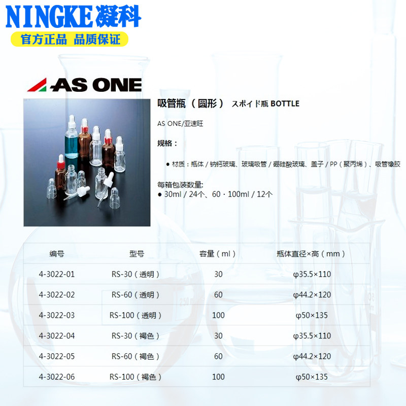 ASONE imported suction bottle glass White dropper bottle brown dropper tea color dropper bottle 30 60 100ml transparent white dropper essential oil dropper bottle