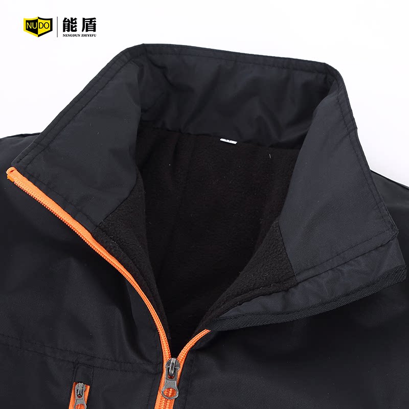 Black and orange (single padded jacket) Black and green (single padded jacket) Black and orange (padded jacket, detachable cotton pants) Black and green (padded jacket, detachable cotton pants)