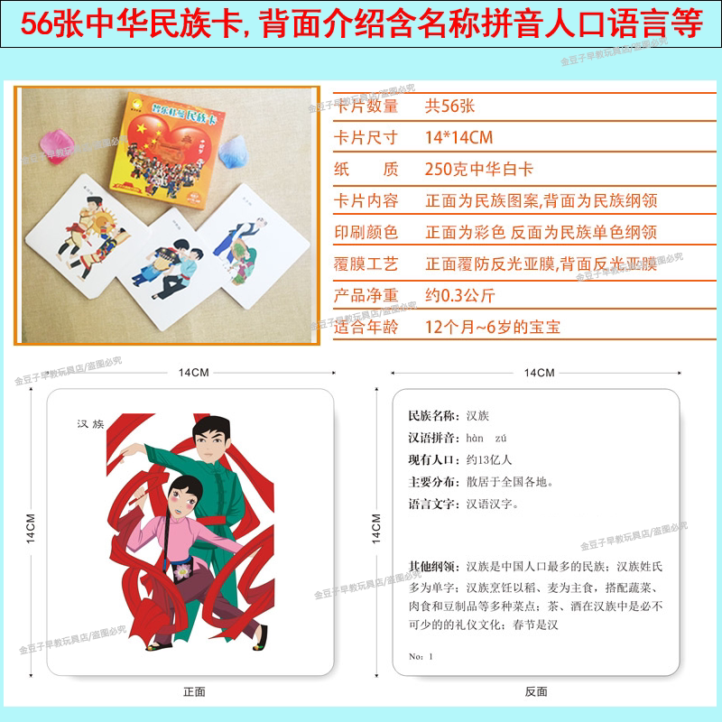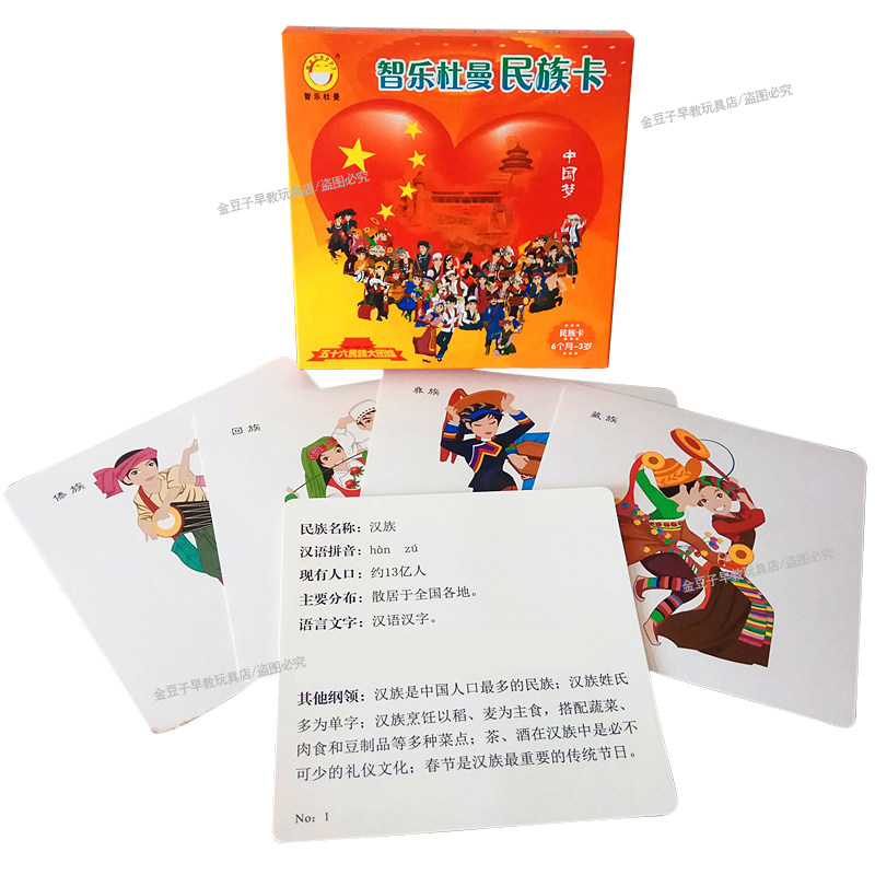 The 56 national card baby in Duman knew the Encyclopedia series 56 national flash card puzzle teaching tool