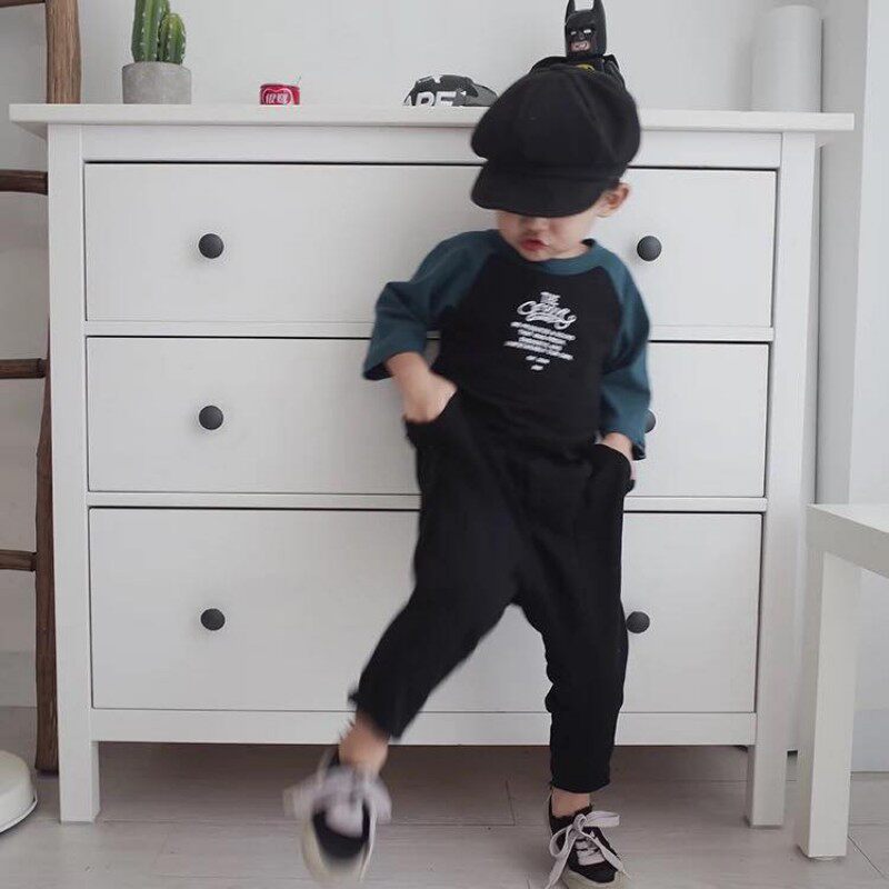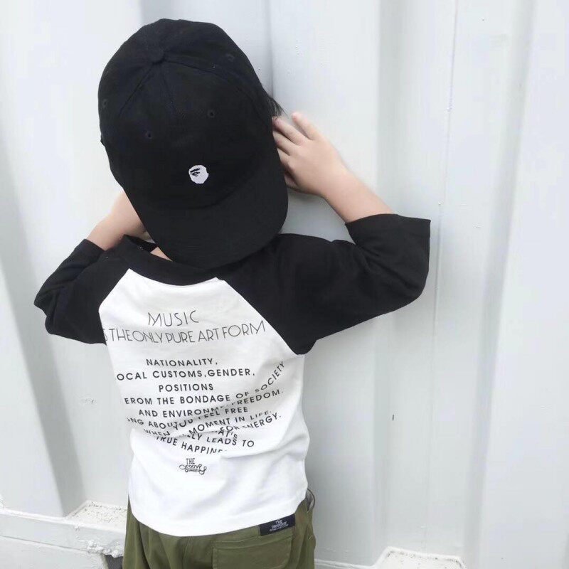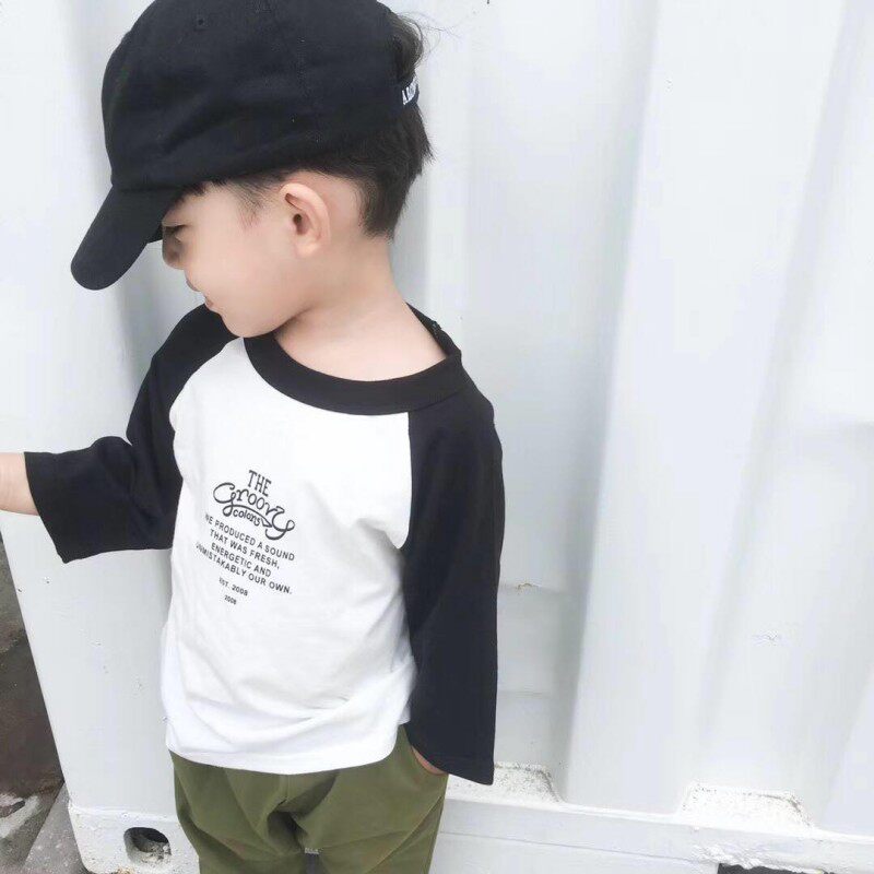 (Jo House ) Spring New Product Boys and Girls Colored shoulder - sleeve letter T - shirt Children's cotton topper