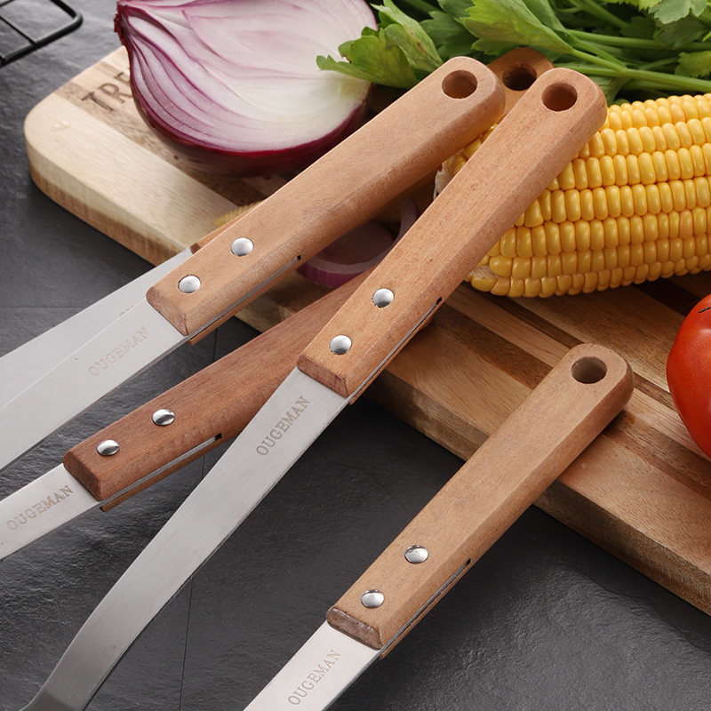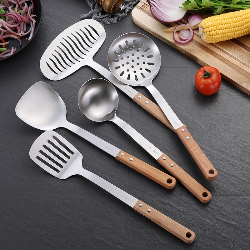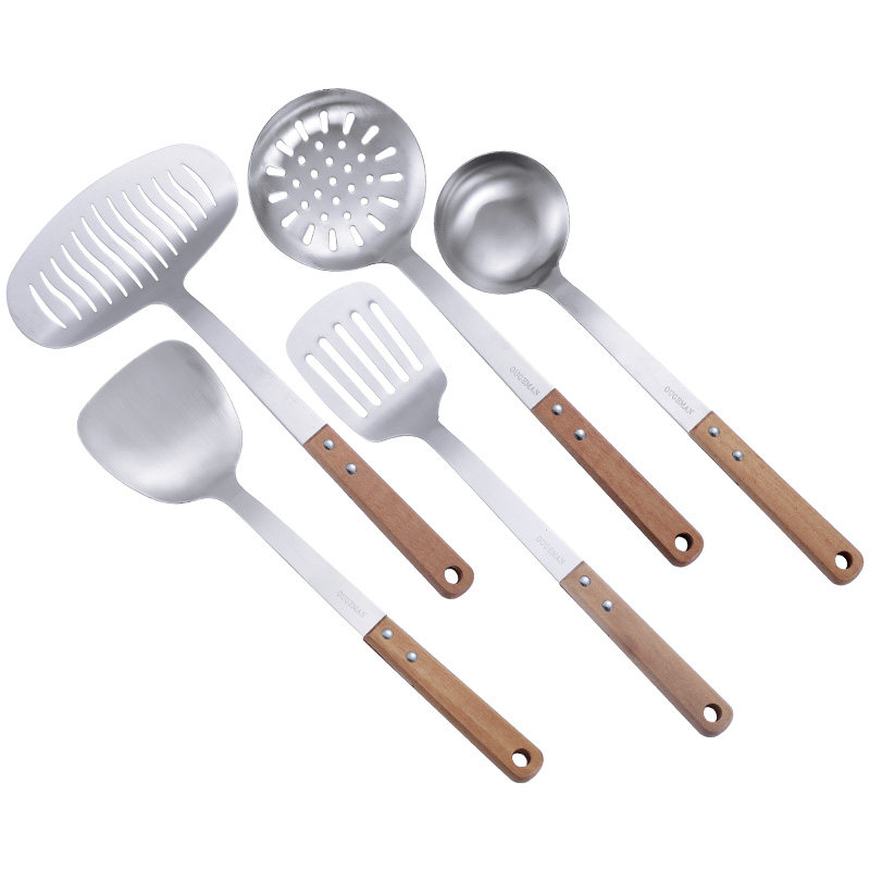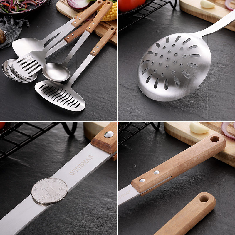 Anti-scalding solid wood wooden handle 304 stainless steel kitchen utensils three-piece kitchen household set spoon full set of spoon shovel