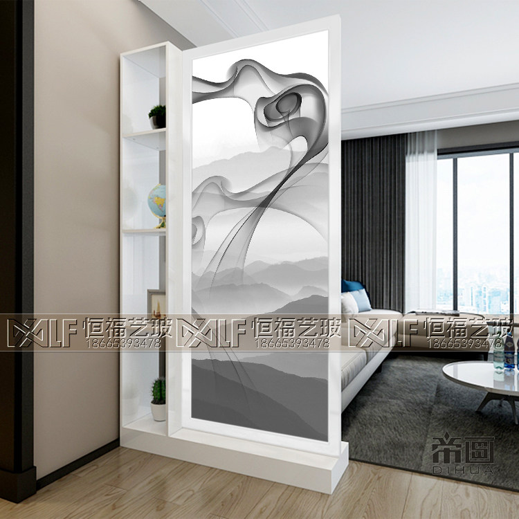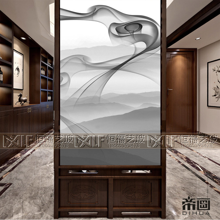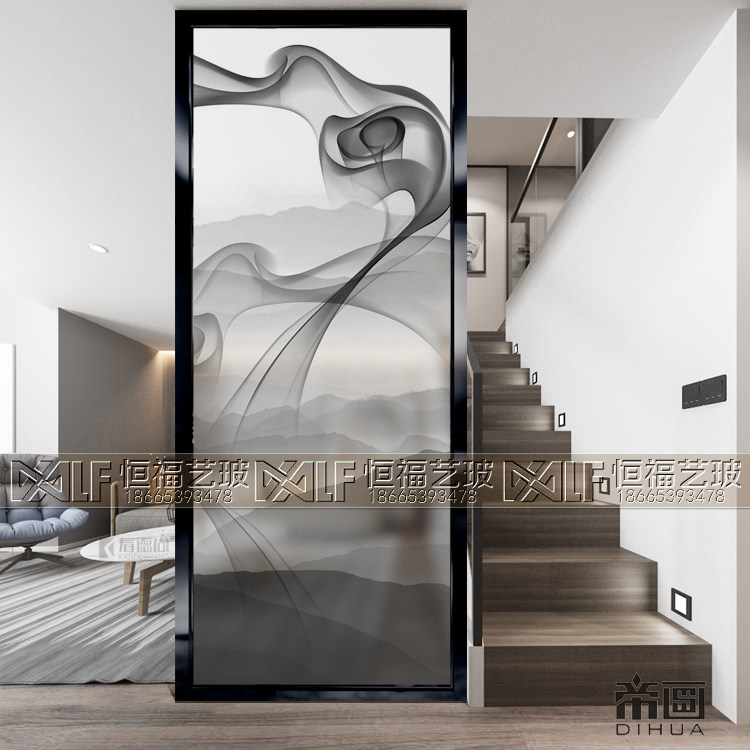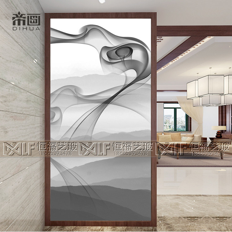 Customized art glass screen partition living room mask background wall tempered finished light transmitting process glass landscape painting