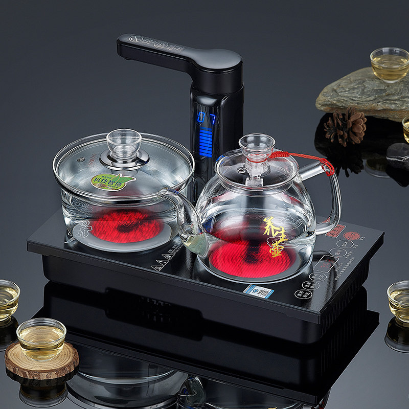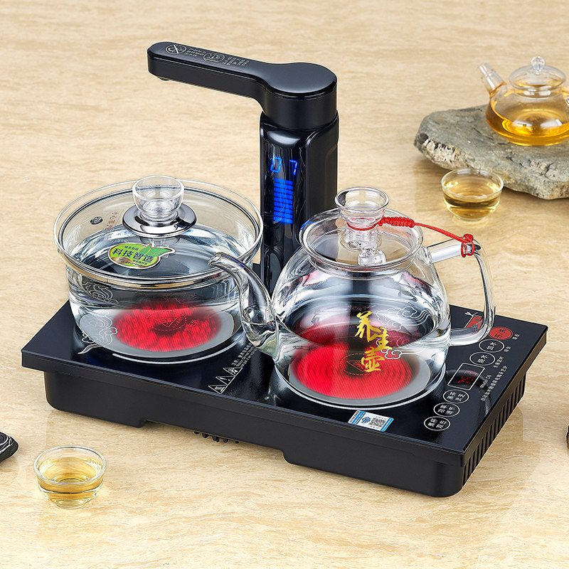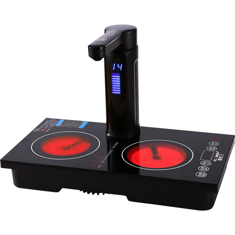 Embedded double head black crystal stove burning water cooking tea stove automatic rotation Sheung Shui tea table tea table tea tray pumped double mouth gas stove stove