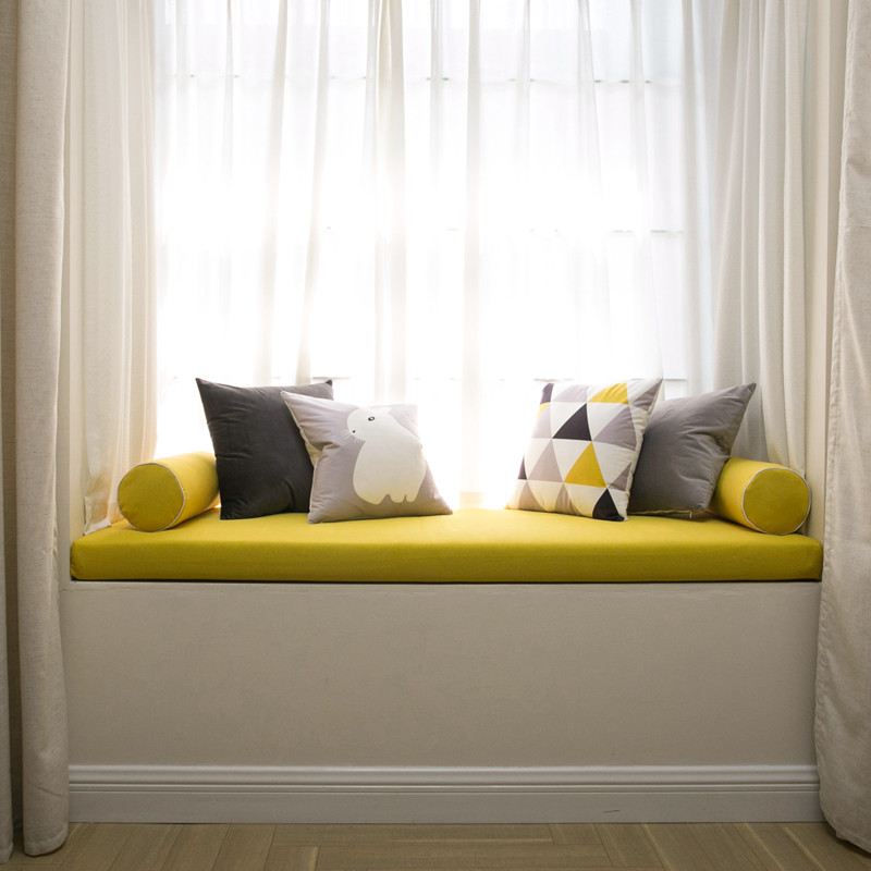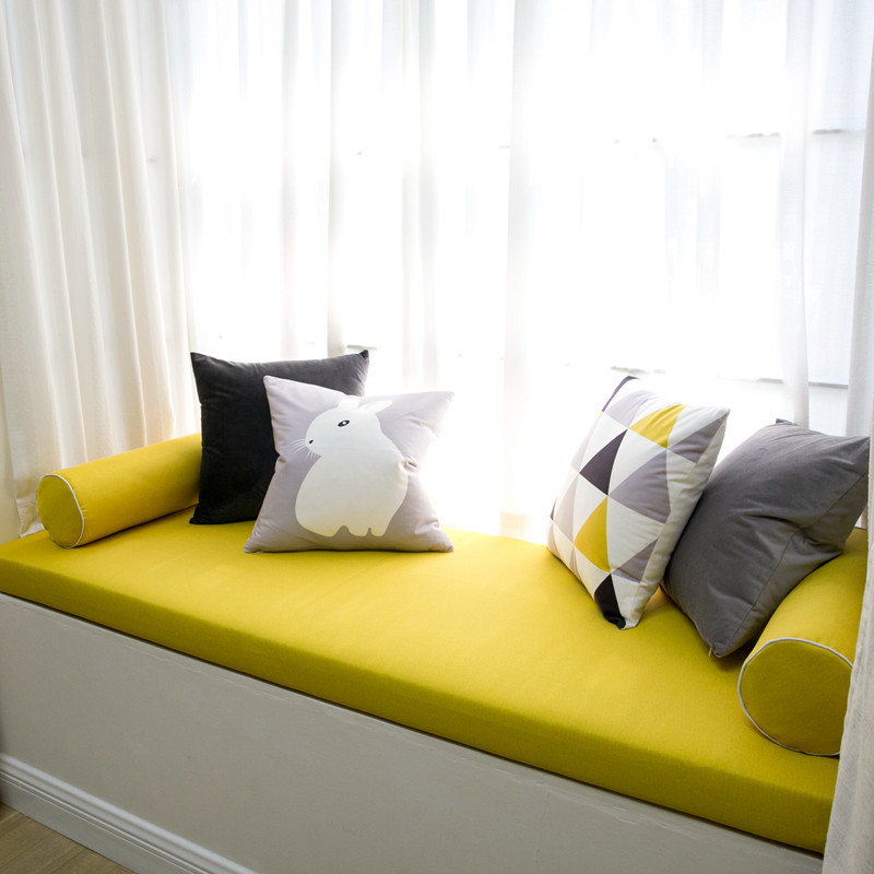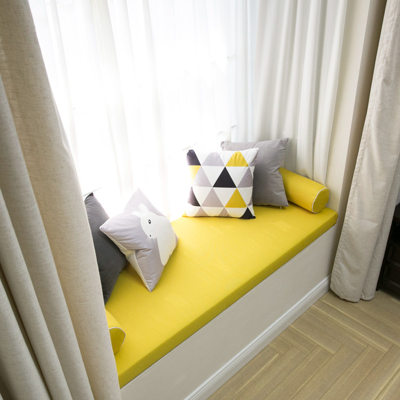 Customized small fresh wheat yellow simple solid color high density sponge bay window mat customized removable washable yangtai window pad