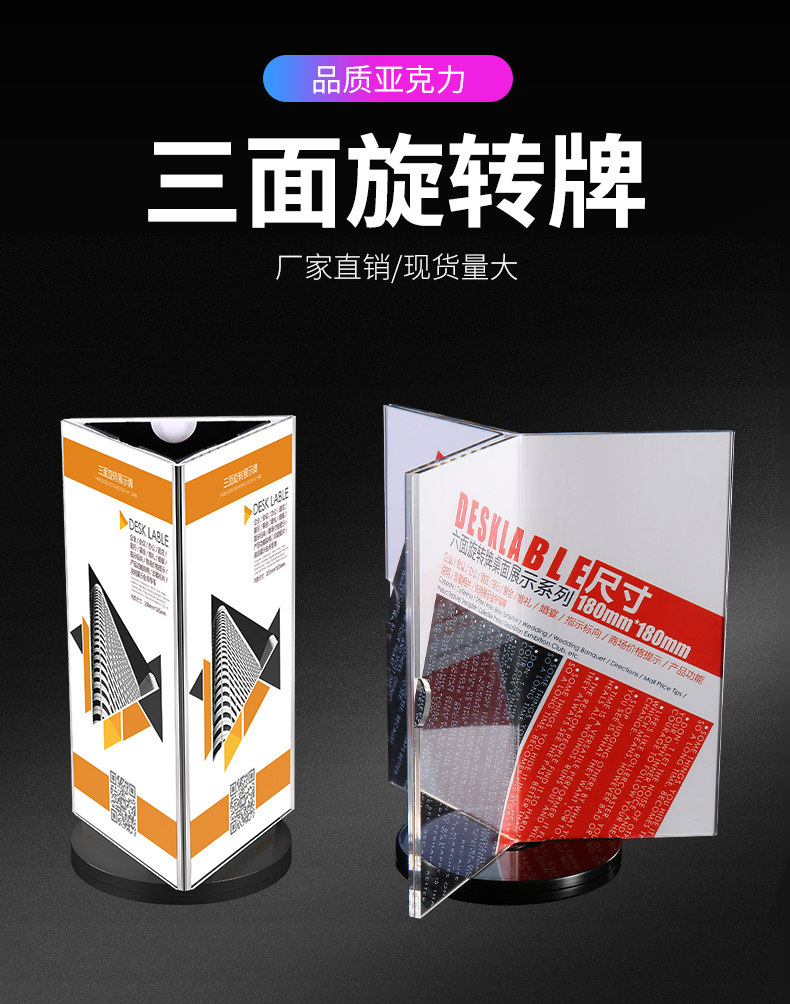 Acrylic three-sided rotary table card holder display cards stand cards table Wine Water card Placard promotional Breakfast can be customised