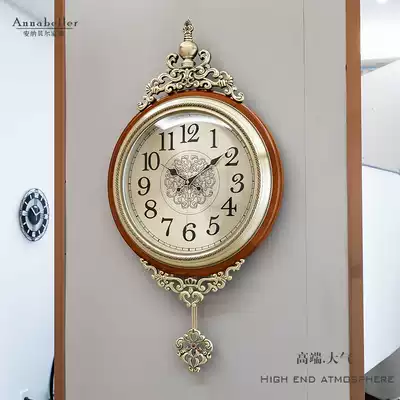 Luxury European light luxury wall clock creative living room solid wood clock home atmospheric American Wall decorative clock hanging wall
