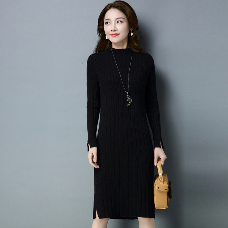 2022 - The new medium - long - edition sweater bag knitting knitting skirt and winter with coat inner dress
