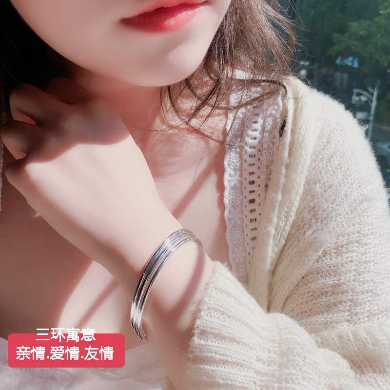 9999 sterling silver bracelet 33 grams three-ring closed heart simple temperament foot silver bracelet to send girlfriend gift lettering