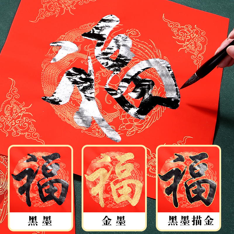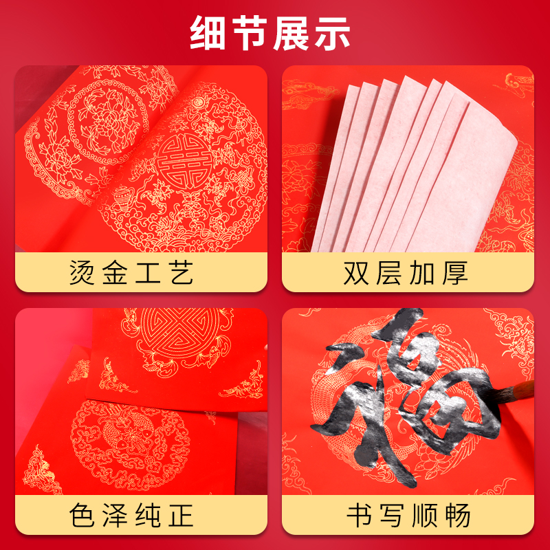 Jiang Left Thickening of the Perpetual Red Writing Fu Characters Bullfighting Xuan Paper Half Raw Cooked Blank Spilled Gold Large Red Paper High-end Handwritten Chinese Spring Writing Spring Couplets Paper Red Paper Large Zhang Writing Bronzed Calligraphy Brush and Calligraphy Brush couplets