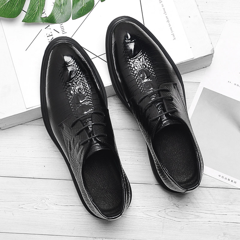 Autumn Head Leather Leather Breathable Men Business Formal Leisure Shoes English Han Edition Tip-headed Wedding Shoes