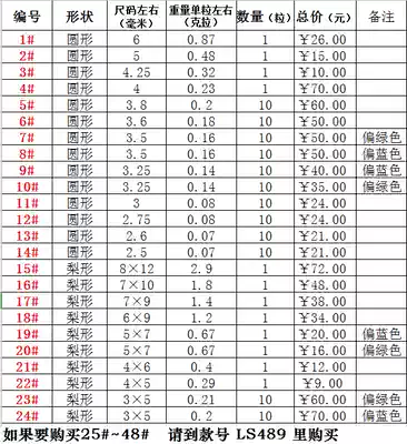1# round 6mm (1 grain) 2# round 5mm (1 piece) 3# round 4 25mm (1 piece) 4# round 4mm (1 piece) 5# round