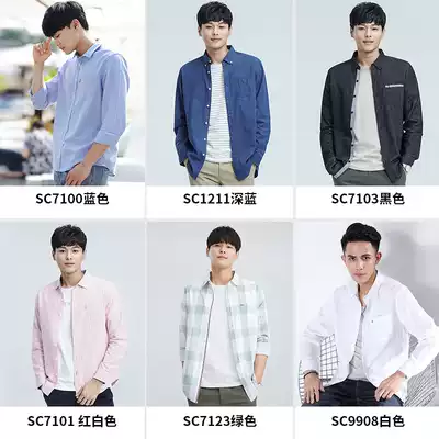 Hanska (clearance sale single piece 49 two pieces 69) spring and autumn black and white plaid long sleeve shirt men