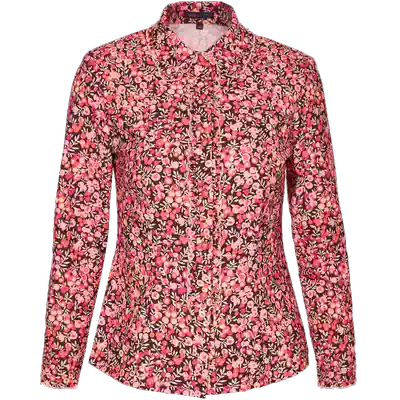 Mulan retro printed shirt women's slim-fit long-sleeved floral lapel shirt Mom temperament chic top short section