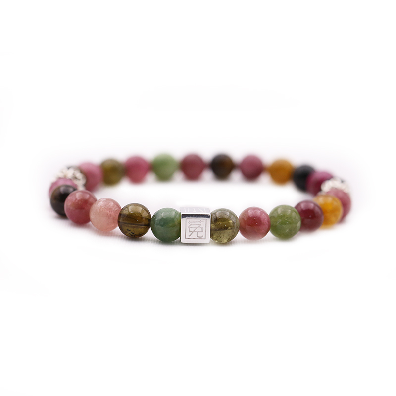 Dodu Xiaodu custom girl tourmaline single circle with silver beads bracelet Color tourmaline hand string gift to girlfriend and best friend