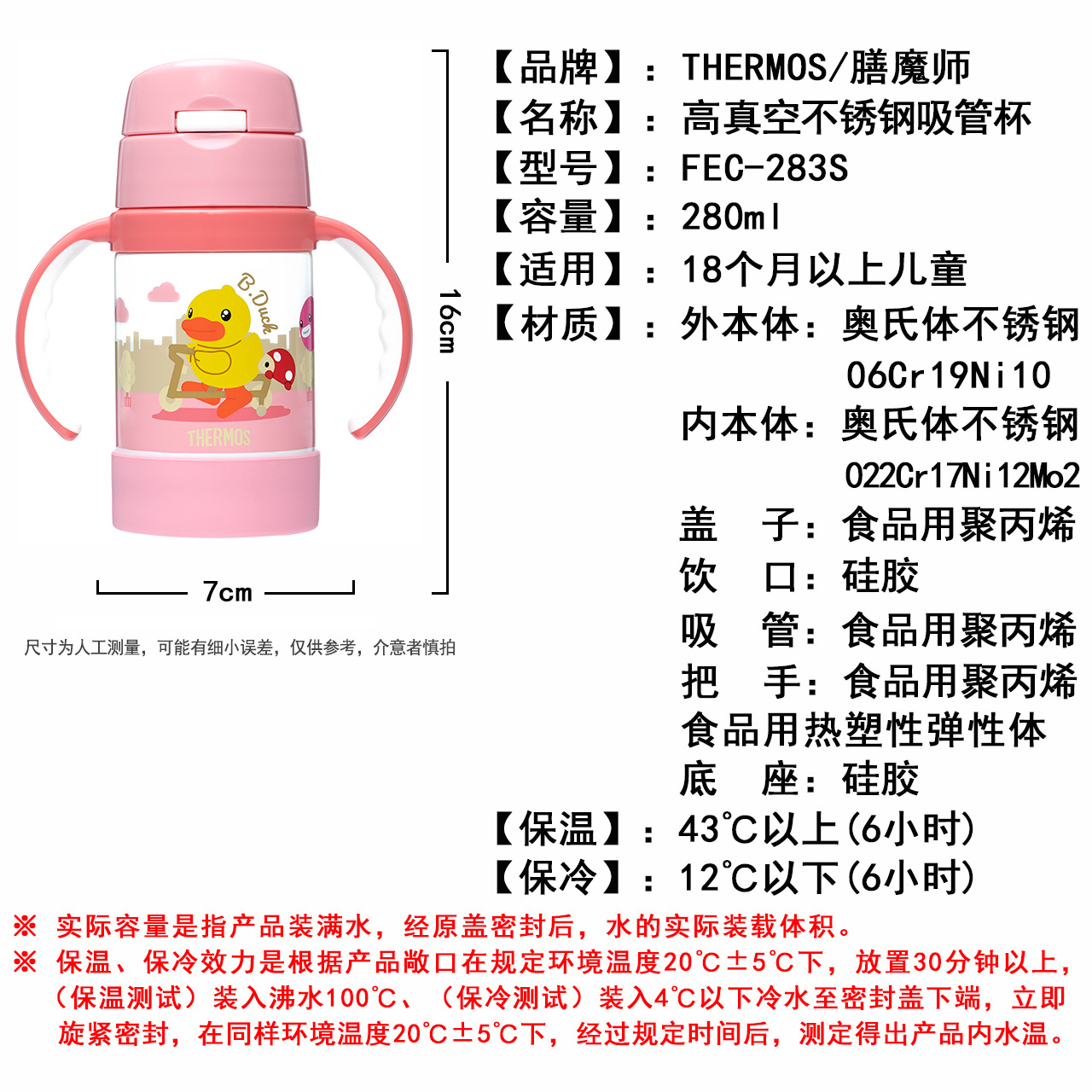 Zen Master children's thermos cup Learning drinking cup Baby stainless steel with handle Baby drinking straw cup FEC-283S