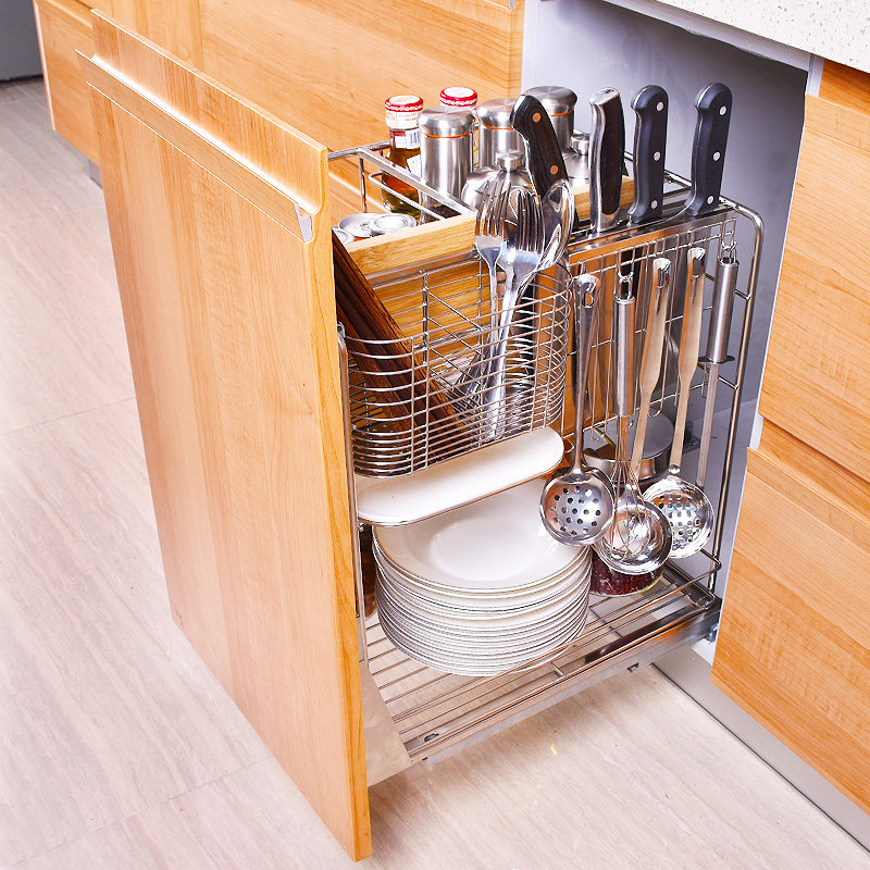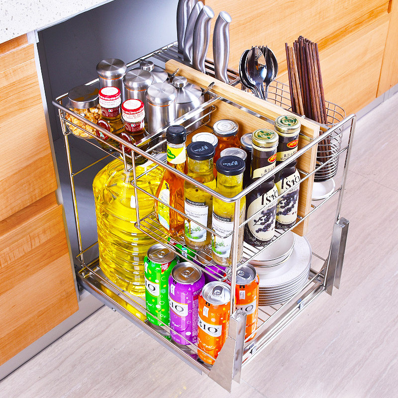 Shihan 304 stainless steel kitchen overall cabinet buffer pull basket condiment basket pull-type thickened seasoning bowl rack pull basket