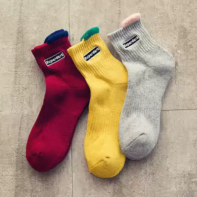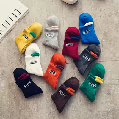 Socks male cotton tide Korean version of academic style Spring and Autumn Winter towel bottom personality half Terry winter socks women