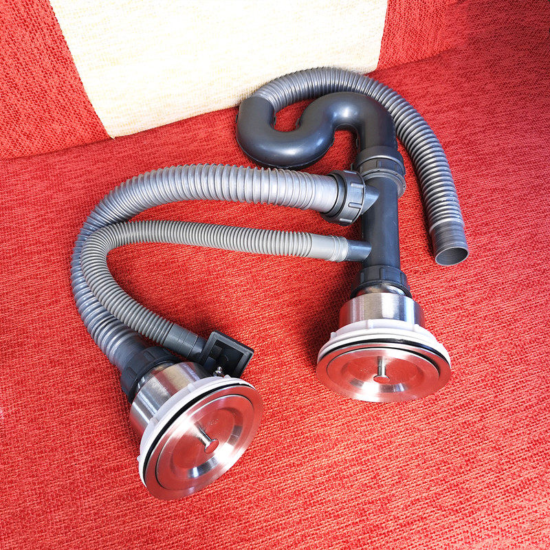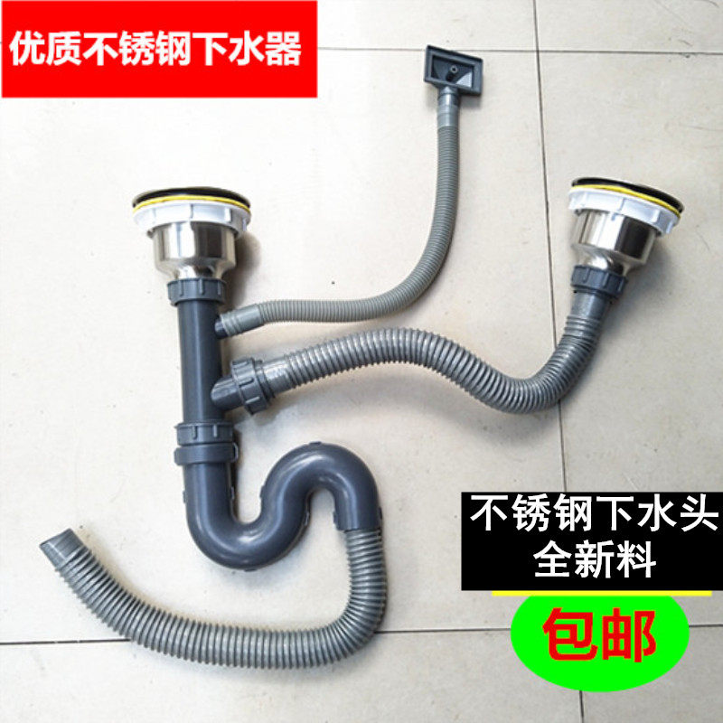 Kitchen sink sink stainless steel sewer fittings double-slot deodorant dish basin table basin sewer head set sewer pipe