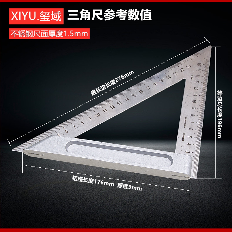 XIYU-Seal domain 200 thickened stainless steel triangular ruler wide base laser engraving high-precision woodwork ruler triangular ruler
