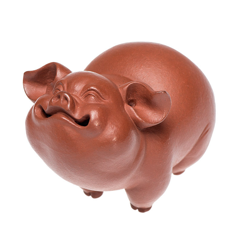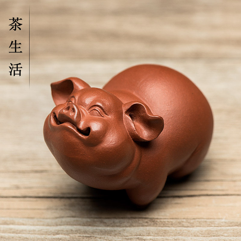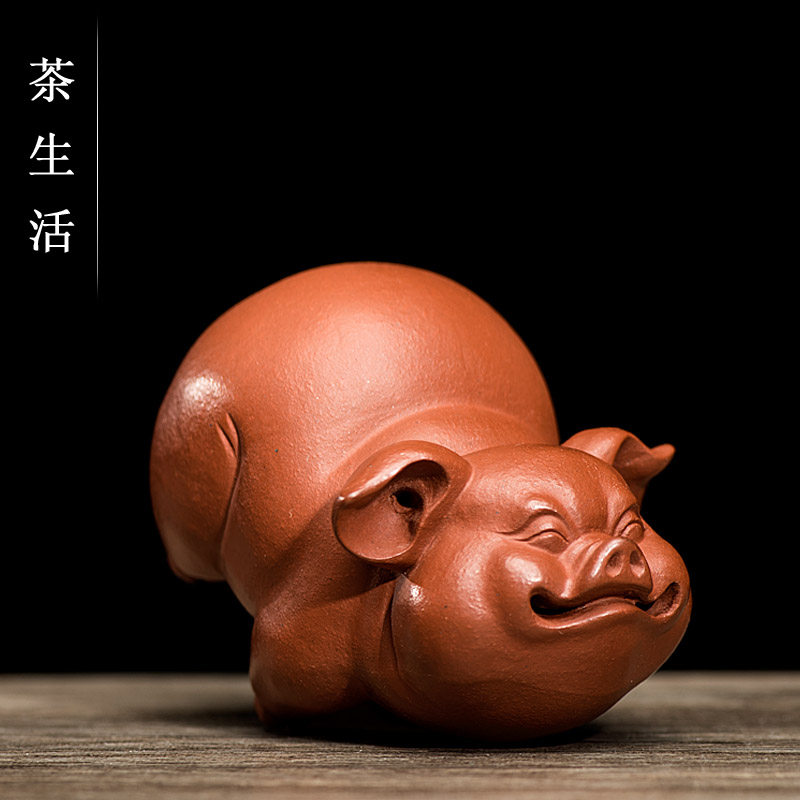 Tea pet ornaments boutique Purple sand lucky pig sculpture Cute pig Zodiac Pig handle tea tray Home decoration gifts