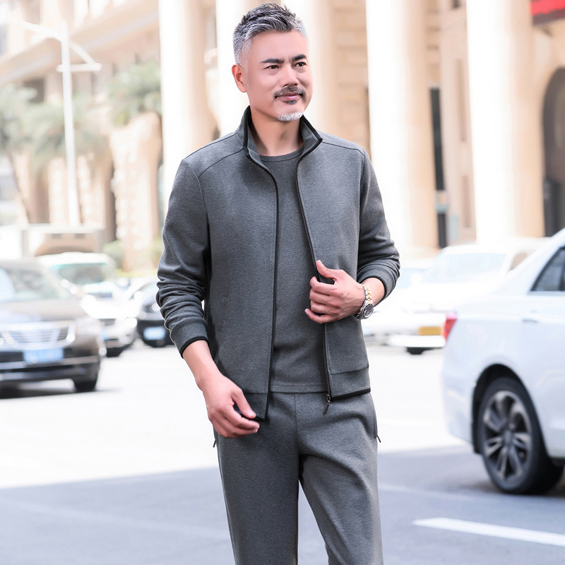 Sports suit men autumn winter men leisure daddy sportswear clothes in the elderly winter plus sportswear suit