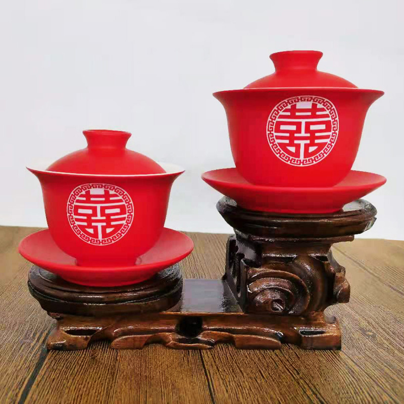 Hot stamping double comedy respect tea cup a pair of dragon and phoenix chengxiang style respect tea cup a pair of cartoon style respect tea cup a pair of white joy respect tea cup a pair of golden joy respect tea cup a pair of paper-cut respect tea cup a pair of gilded double happy respect tea cup