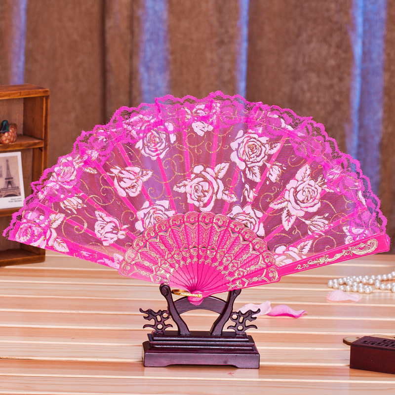 Lace rose ancient style square dance dance folding fan children Chinese style classical dance cheongsam catwalk fan