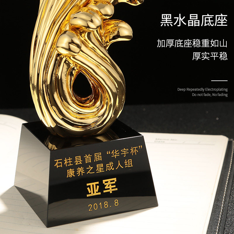 Fish leaping to fly Gold-plated resin trophy Creative fishing trophy custom lettering Corporate employee awards custom