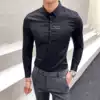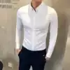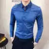 British gentleman embroidered shirt Men's Korean slim slim slip material anti-wrinkle stretch shirt Youth Nightclub fashion shirt