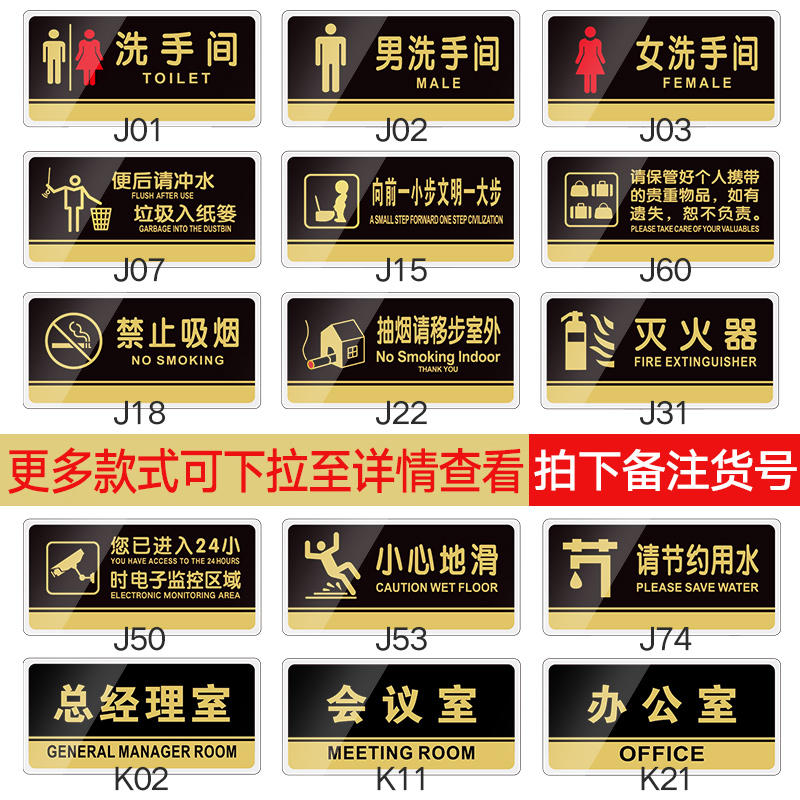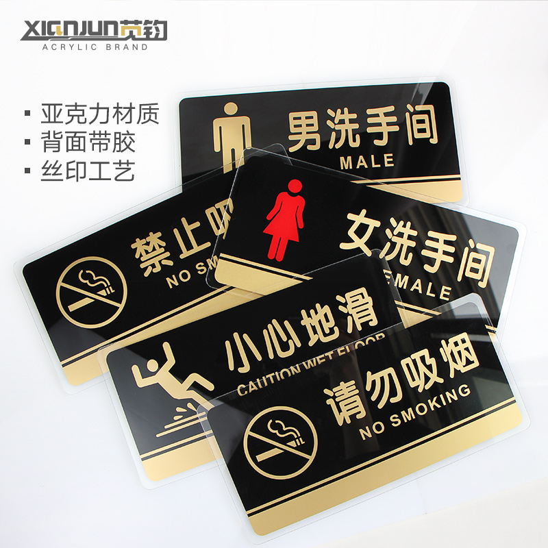Acrylic toilet signboard Bathroom sign Men's and women's toilet signboard no smoking signboard office sign Carefully slide the steps do not meet the door number Custom warm sign