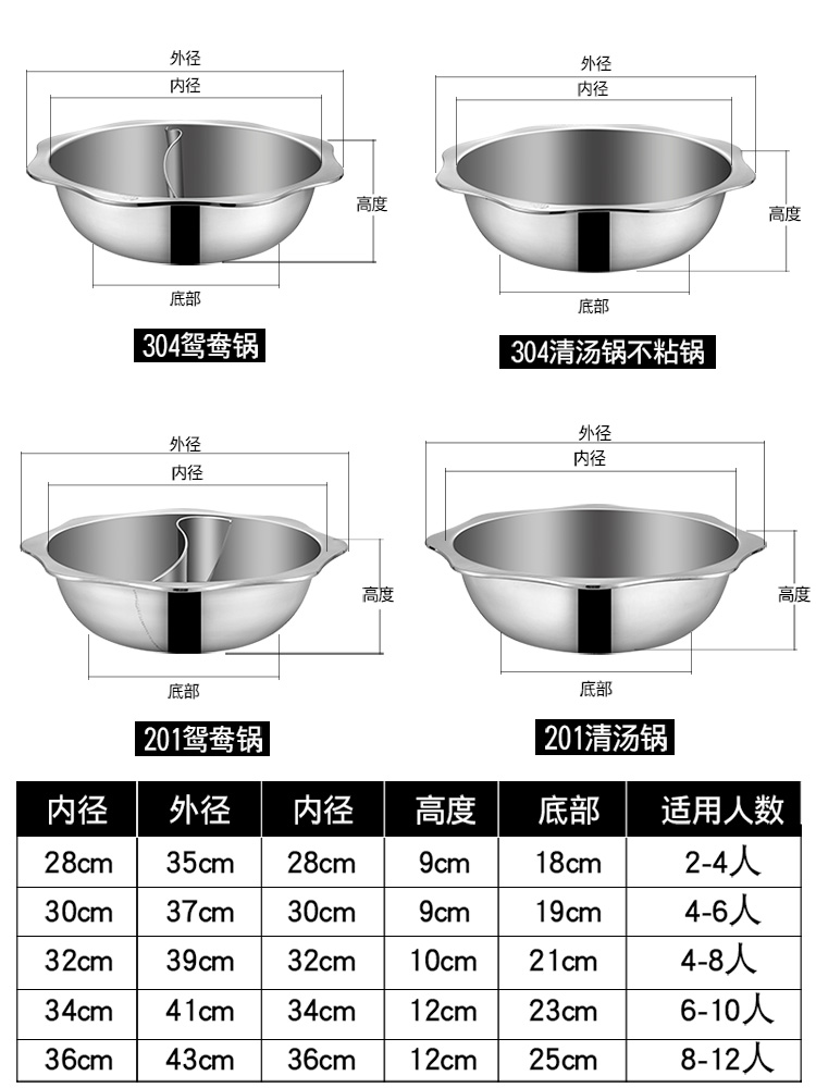 (201) Qing soup inner diameter 28cm coverless (201) Hydrodia 28cm inner diameter (304) Qing soup inner diameter 30cm cover (304) Qing soup inner diameter 32cm band cover