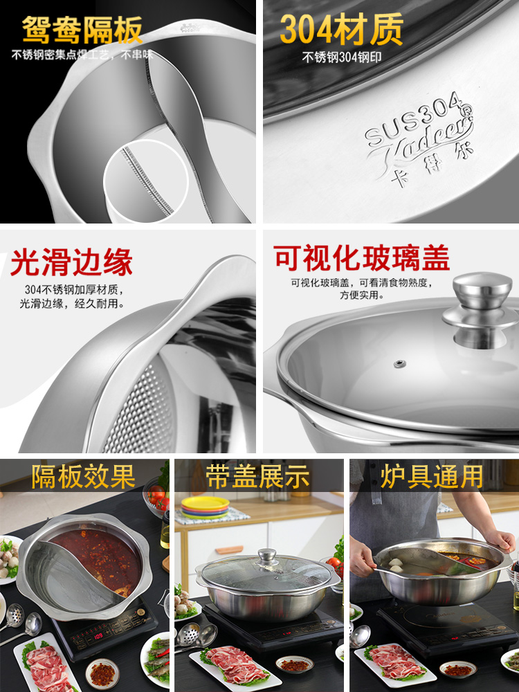 Large capacity 304 stainless steel hot pot duck boiler household electromagnetic furnace commercial large - boiler hot boiler