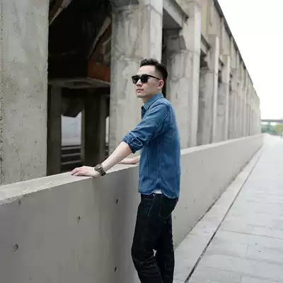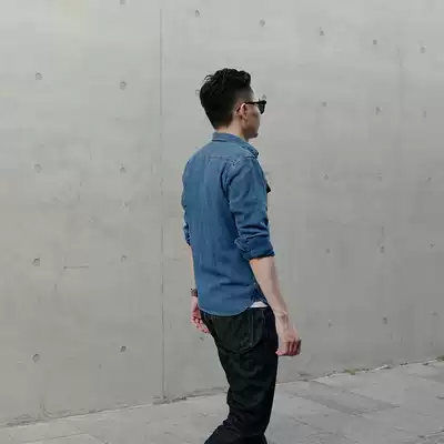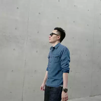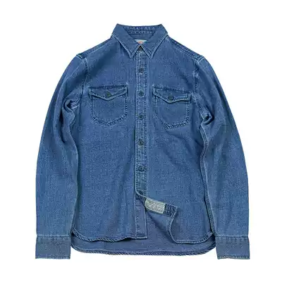 Brook BF original retro denim INDIGO INDIGO shirt men's long-sleeved American tooling made old Ami kachi