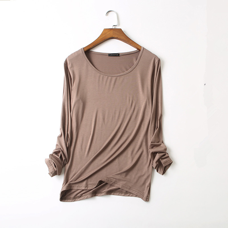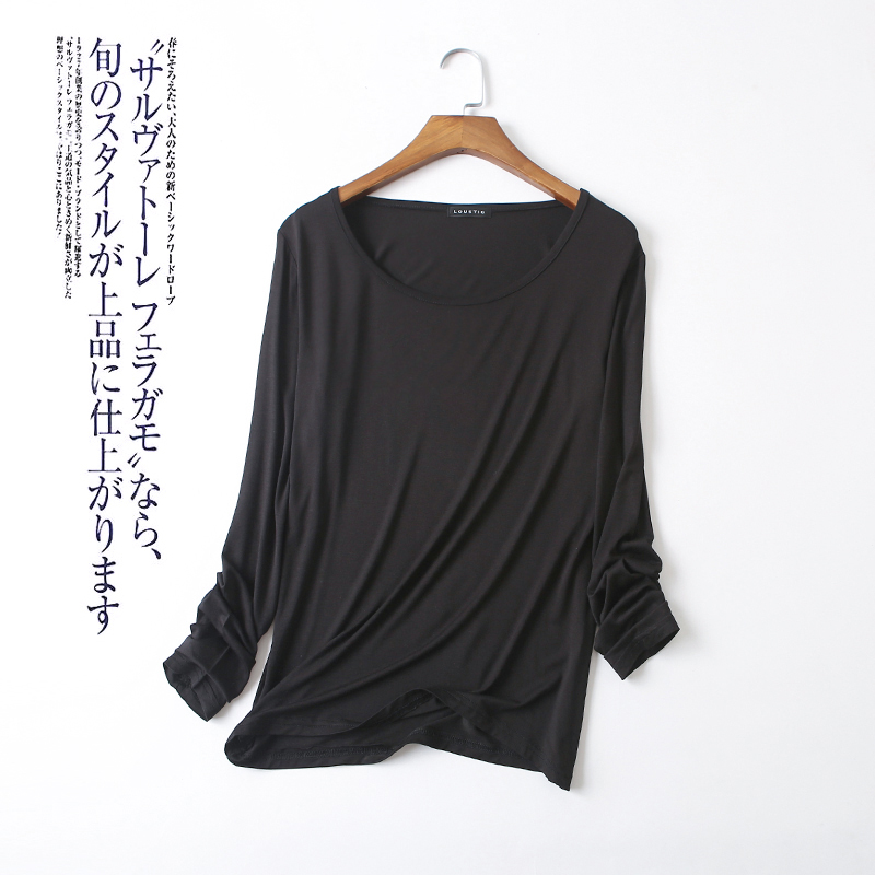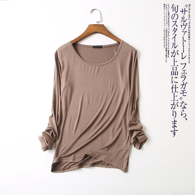 Spring and autumn Long sleeves T-shirt Woman Modale's new Korean version of thin autumn clothes round collar loose 100 lapped white undershirt