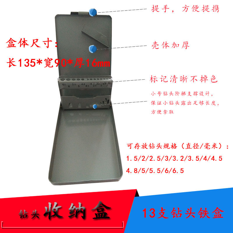 13 13 1-6 5 drills Iron box 100 1-13 bits 1-13 drill bit box cutter box drill bit disc detachable