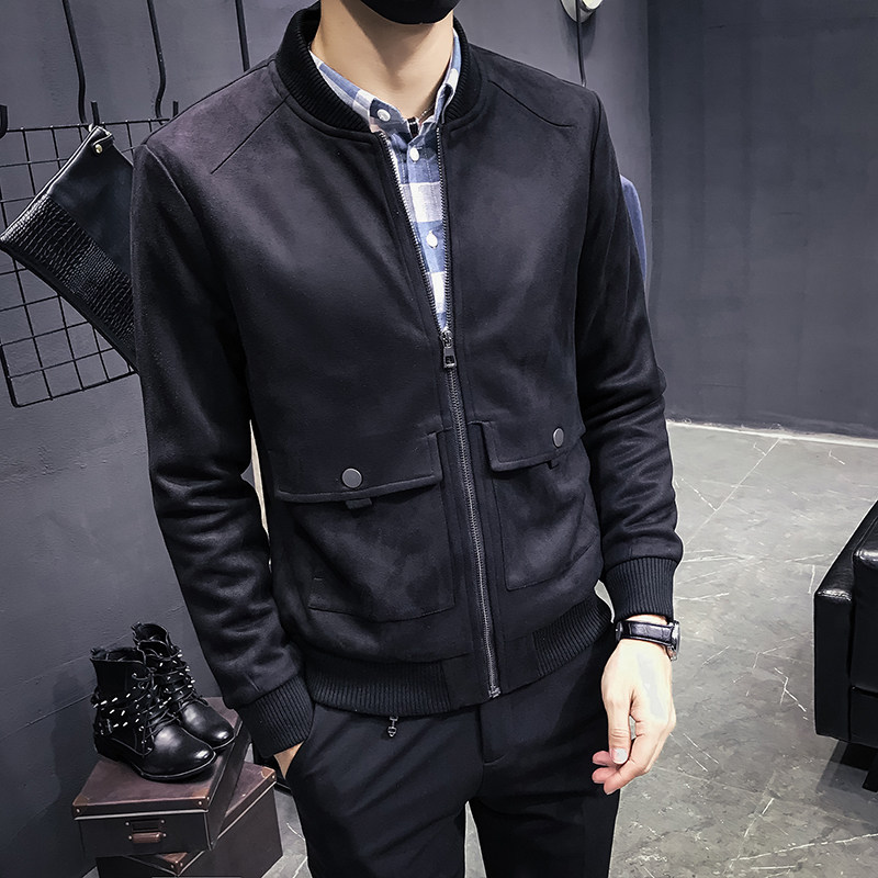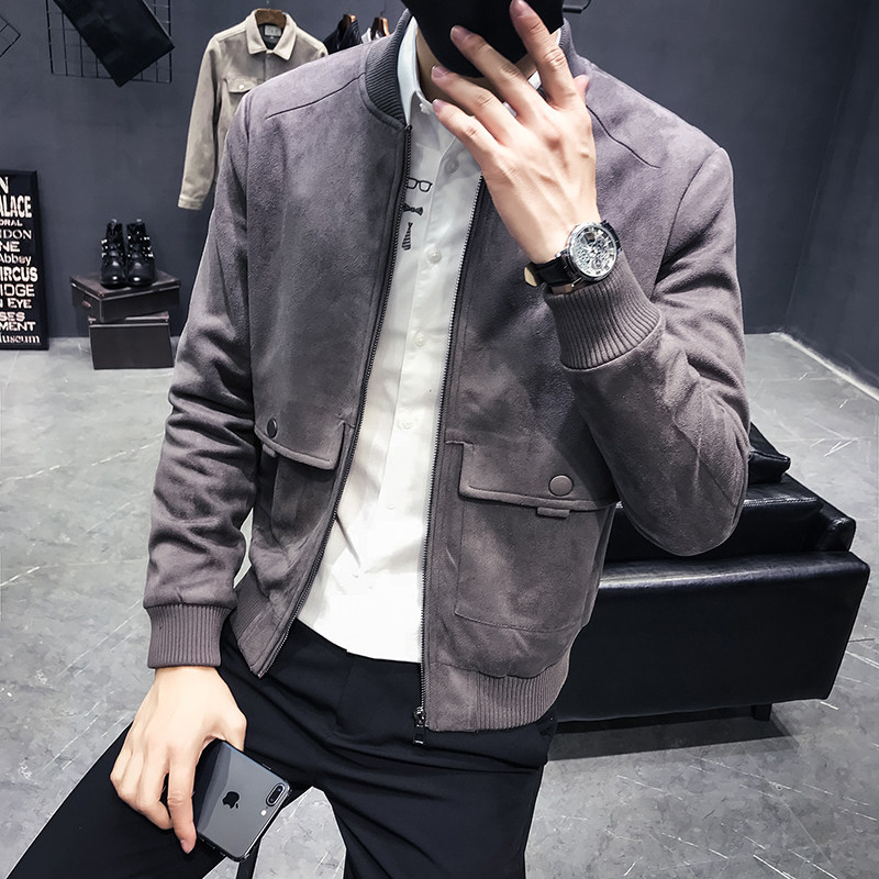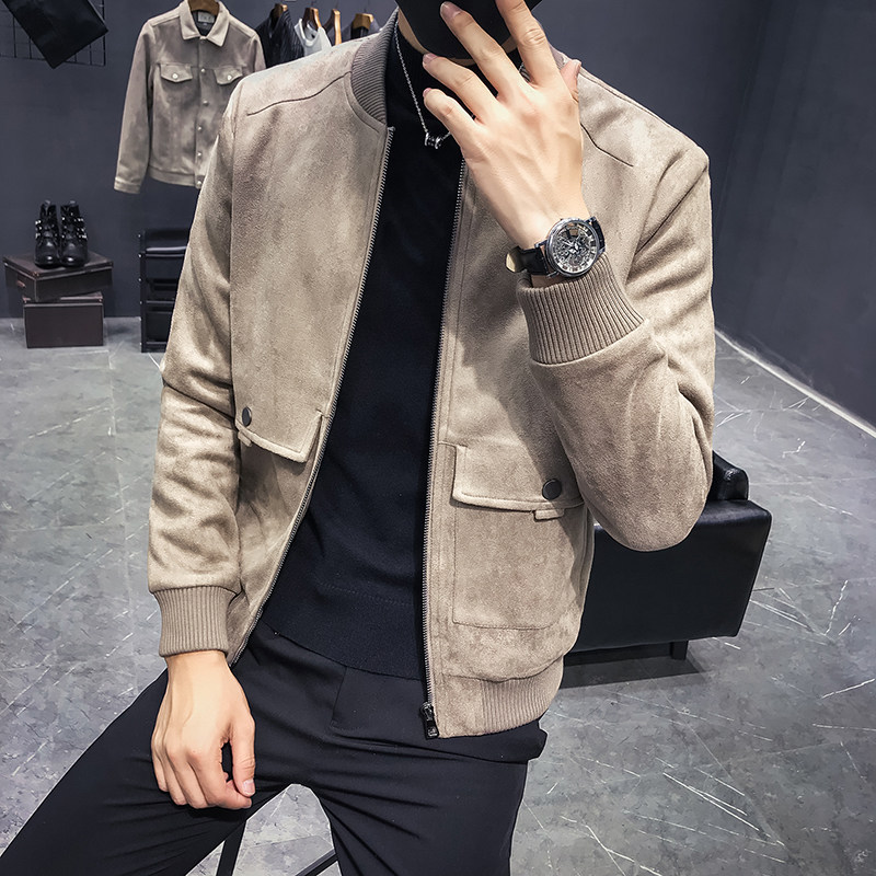 Men's jacket autumn winter 2021 new Korean version Body Deer Leather Suede Jacket Male youth Leisure suede Eggplant Jersey Man
