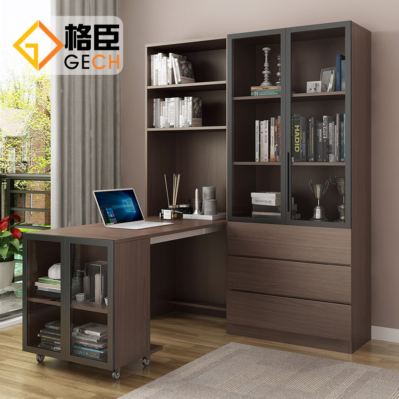 Desk and bookshelf combination home space saving computer desk multifunctional folding telescopic writing study desk