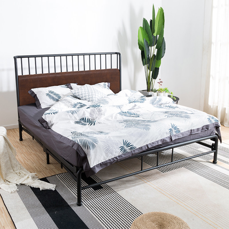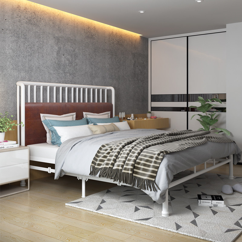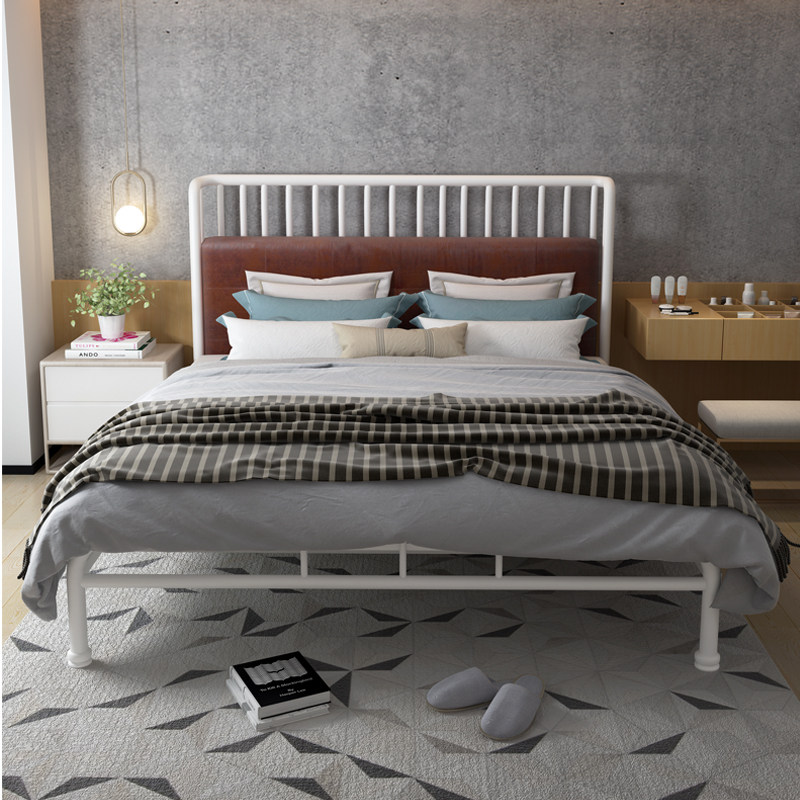 Hirowei Iron Art Bed Light Lavish Nordic Wind 1 5 with soft bag backrest 1 8 m Double LOFT American net red bed